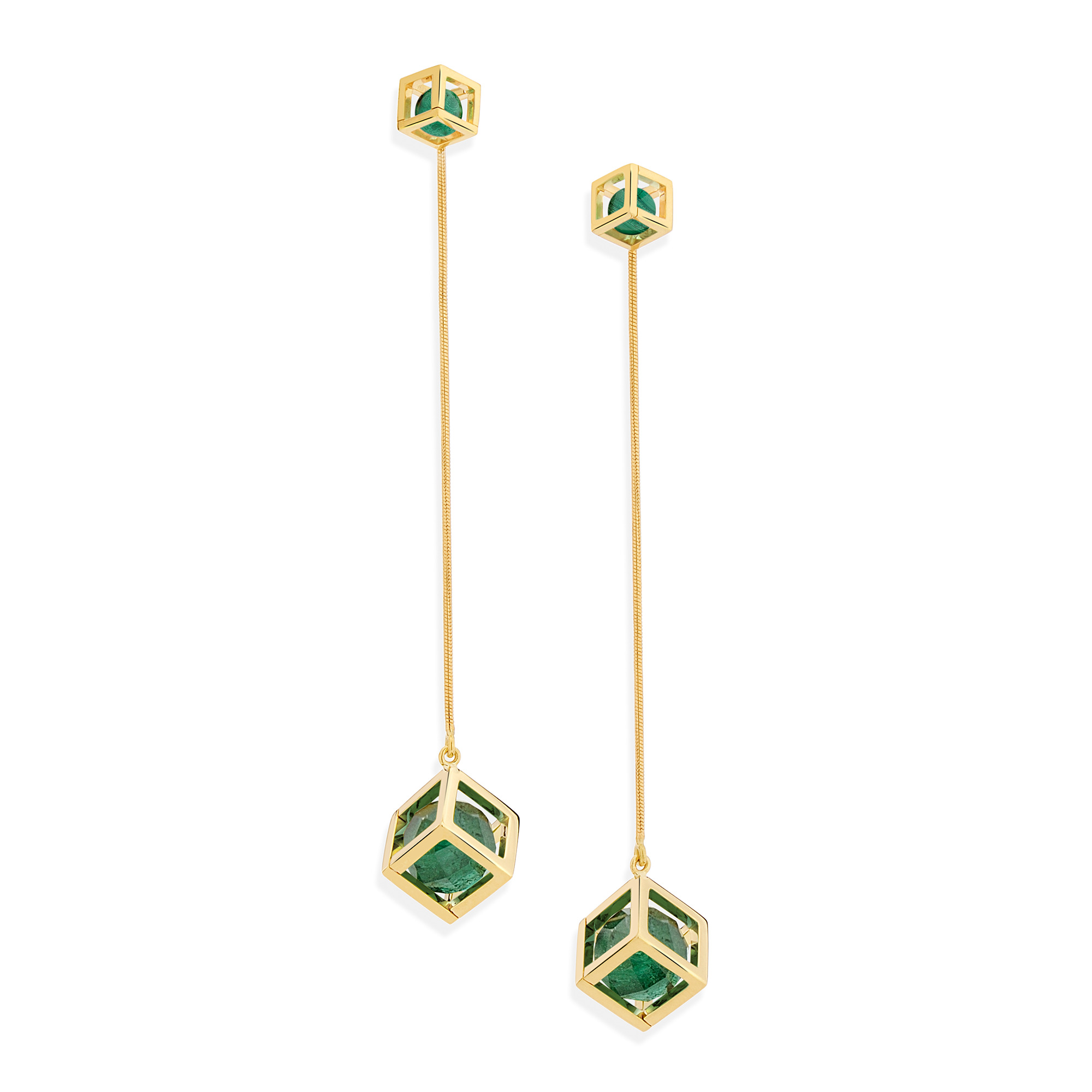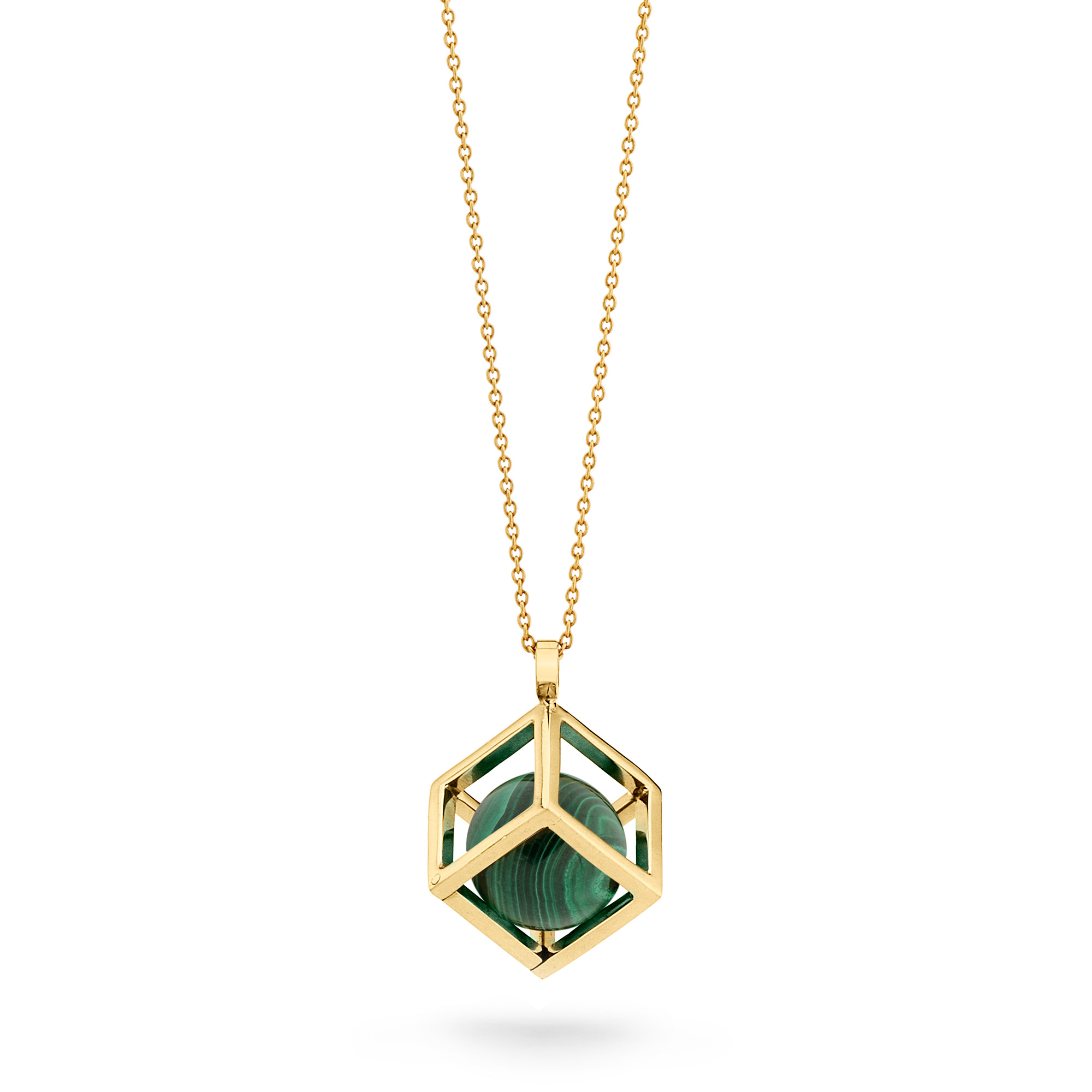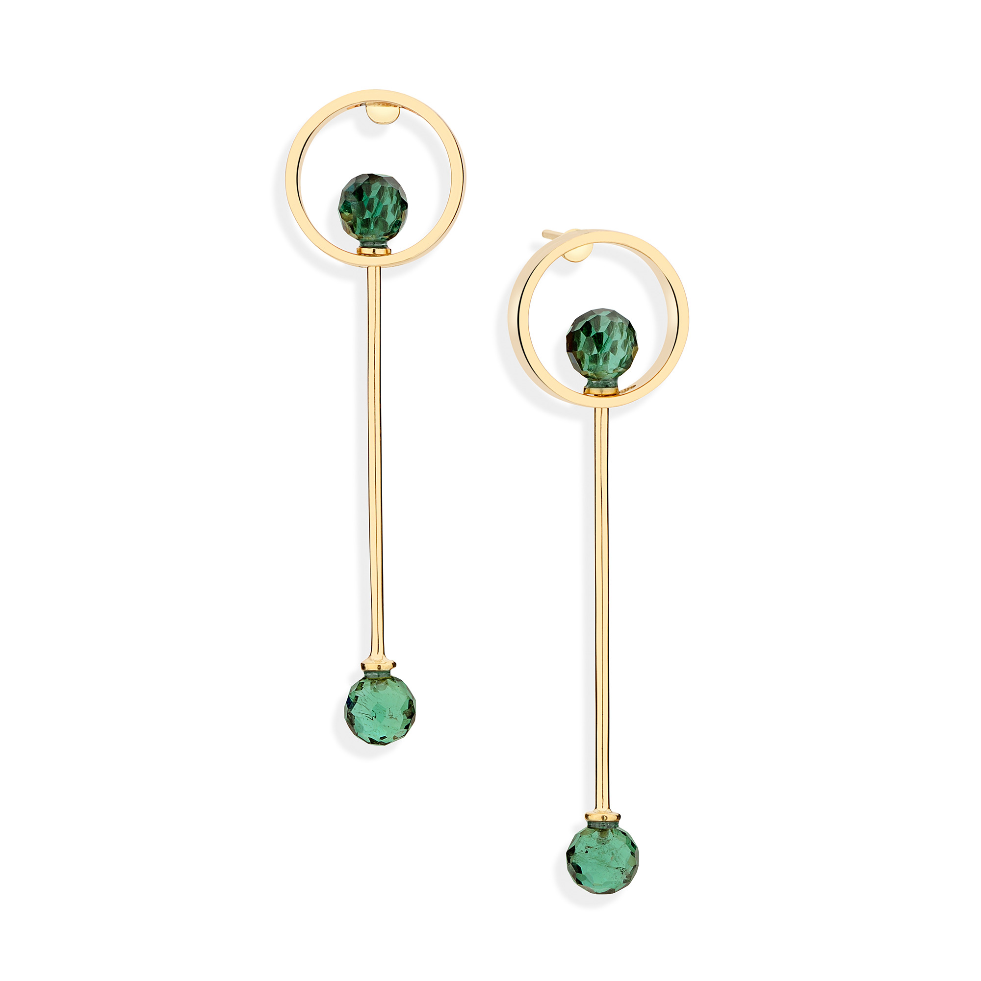 Gems set free, jewelry that comes alive. The Perpetual Motion jewelry collection is a confluence of graphic lines and spherical gems that has a powerful effect on those who wear it and those who view it. Each piece accompanies a woman’s movements. This is kinetic jewelry that creates melodic sounds that are unique to her rhythms, a series of taps and rolls that create their own soundtrack. Jewelry in motion, made with vividly colored, smooth and faceted gemstones in all shades of the rainbow, from pale blue aquamarines to vivid orange carnelian, milky purple amethyst and deep pink tourmalines. The kinetic jewelry is defined by gemstones that are lined up and ready to roll in bracelets, framed on the edge of rings, and dangling in golden cube pendants that cascade from tiny circles to globular gumballs. Curves and spinning wheels give kinetic jewelry and the gemstones inside even more latitude for movement as they roll and glide on golden tracks, swaying from side to side or coming full circle again and again. They are playful elements within the motion jewelry collection, one that captures the magic of childhood toys and all the wonder that accompanies them, but with the bold sophistication of a grown-up treasure.