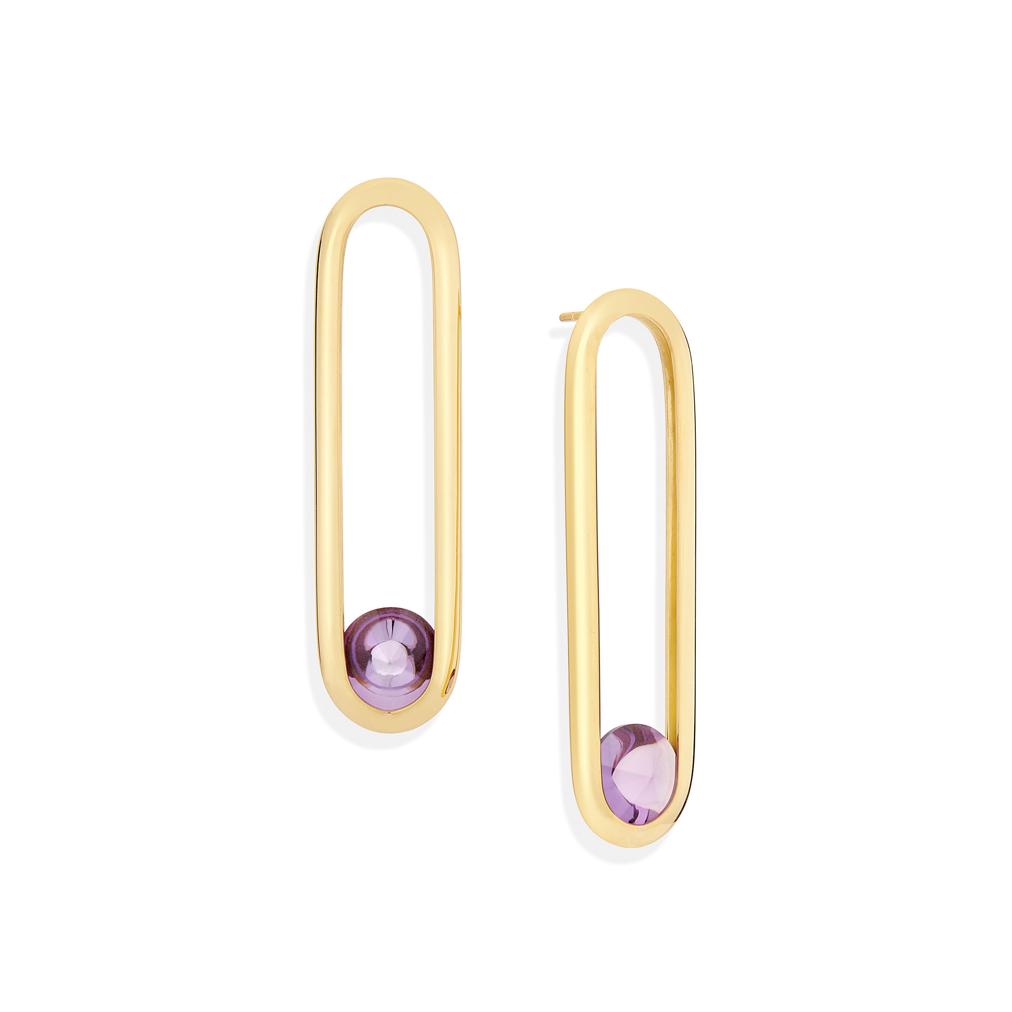 Precision and a playful spirit, on constant, whirling display. It took six months to develop stone cutting and construction techniques that turn rough gems into sleek spinning tops. Each one is intricately set into spinning jewelry, pendants, earrings, and rings. Once they are on the right track, things never stop moving.