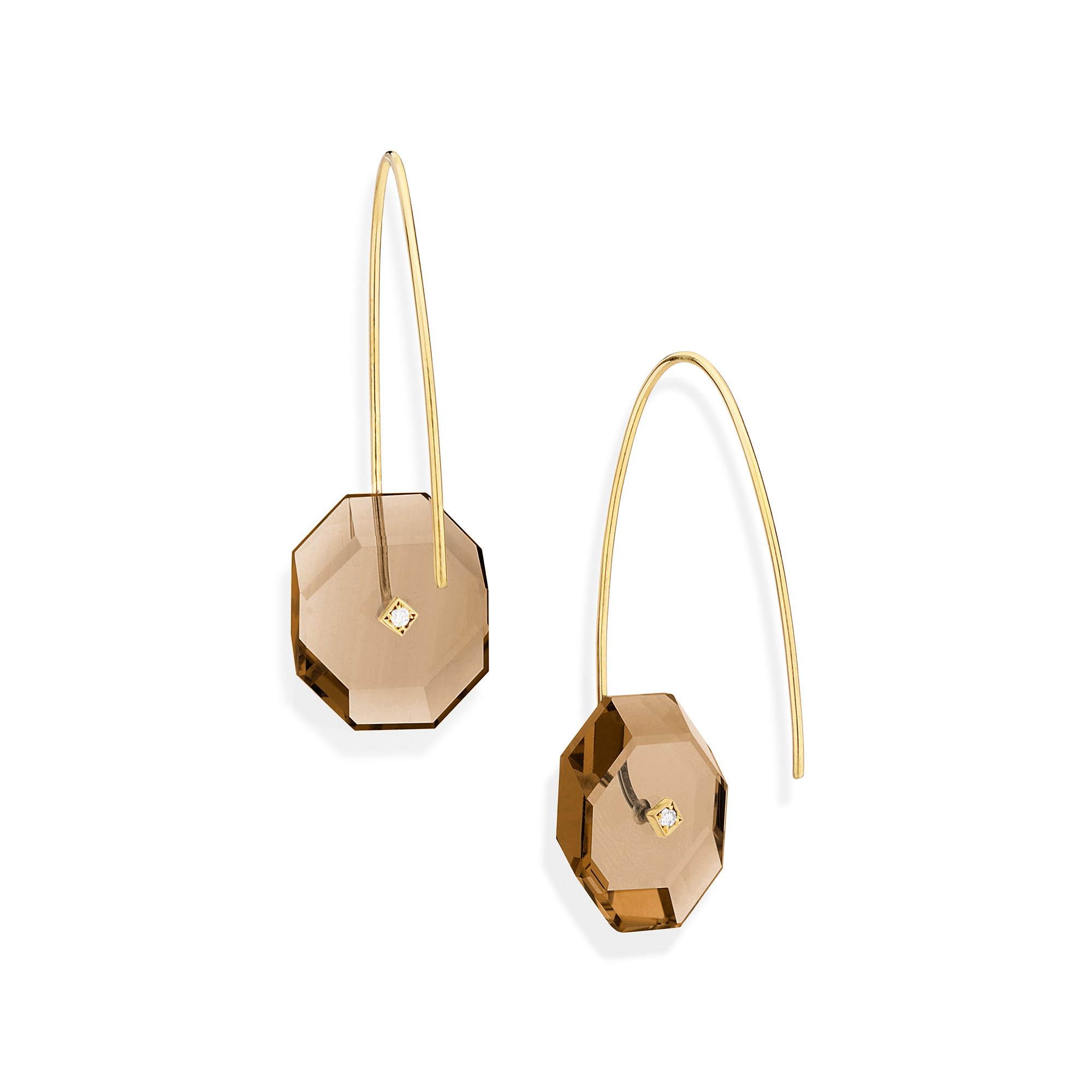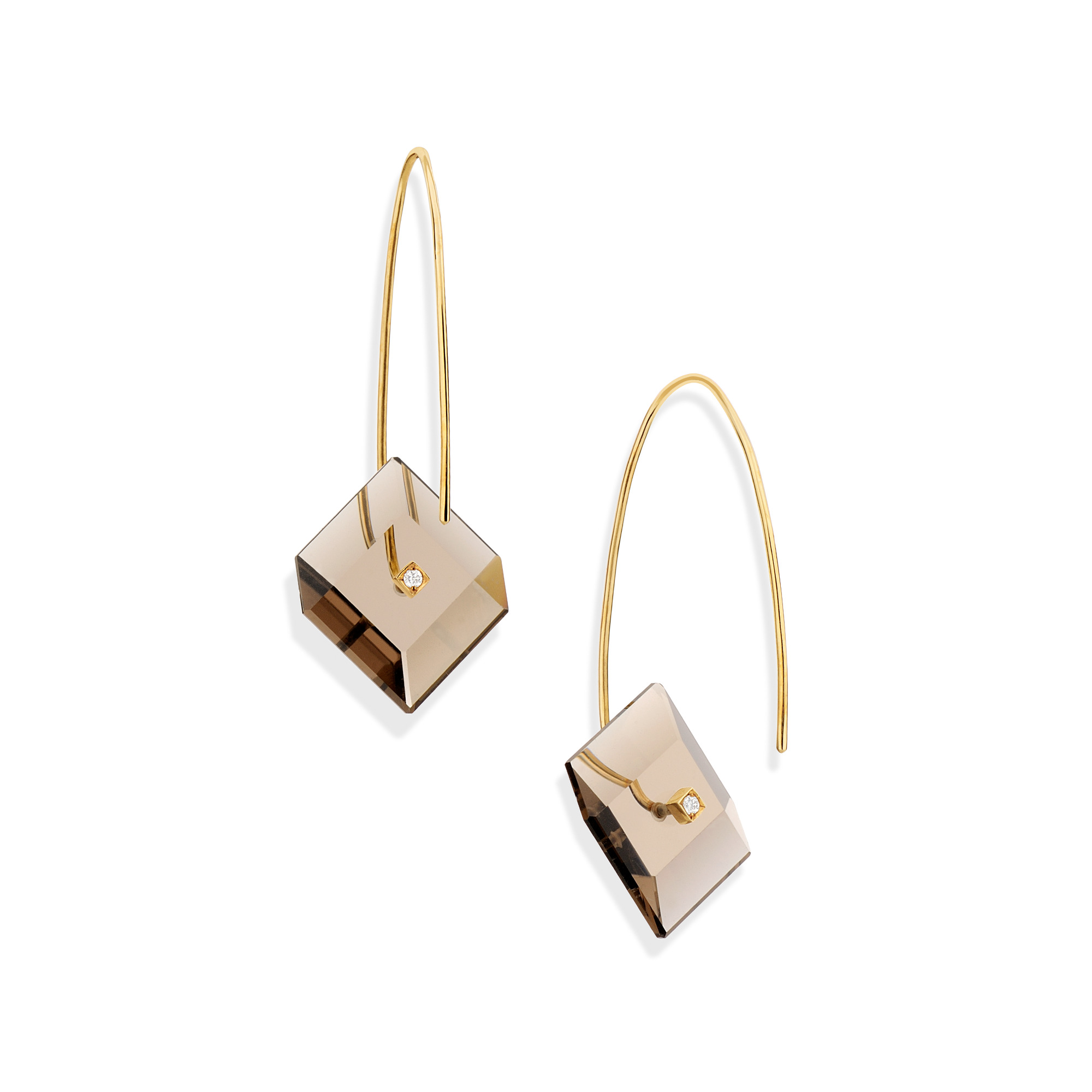 18k Yellow Gold, Square Smoky Quartz Earrings – Reverse Fit Square Earrings